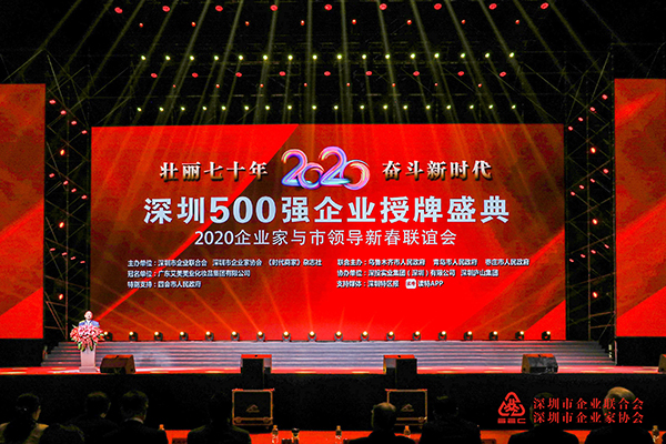 12月10日,由深圳市企業聯合會、深圳市企業家協會、《時代商家》雜志主辦的“壯麗七十年,奮斗新時代”深圳500強企業授牌盛典在深圳灣體育中心春繭體育館隆重舉行。