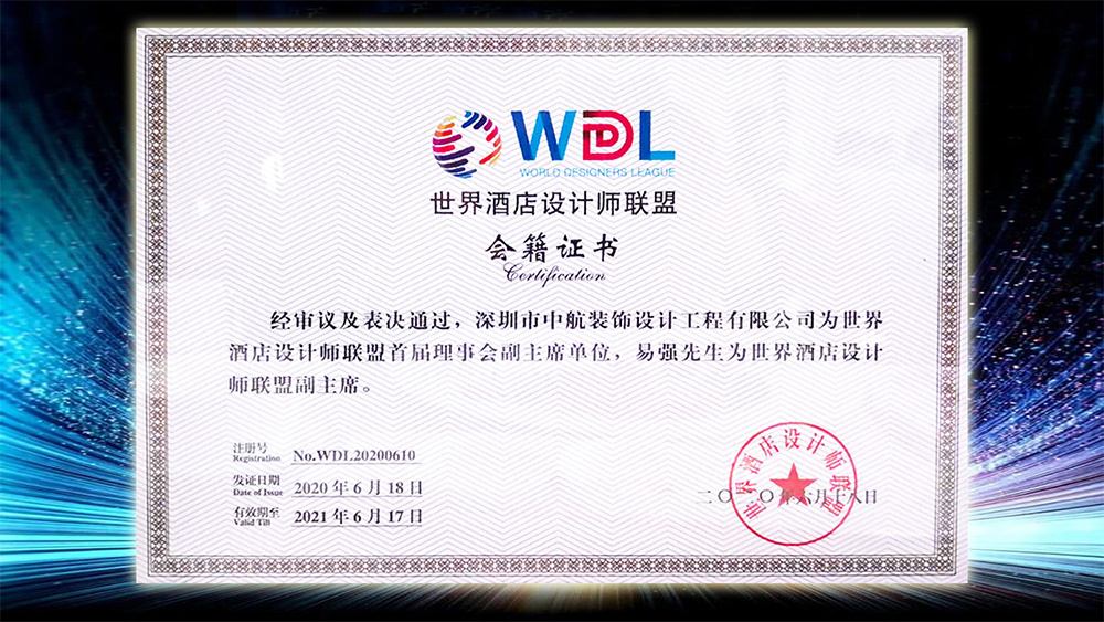 “世界酒店設計聯盟”由聯合國開發計劃署、亞太酒店協會、全聯房地產商會、全聯房地產商會酒店投資商分會、全聯房地產商會高爾夫俱樂部、中國飯店業名人俱樂部、中國飯店雜志社等機構創辦。此次中航裝飾能被選為首屆理事會副主席主席單位亦是業界對中航裝飾“專業性”、“藝術性”、“創新性”的認可。